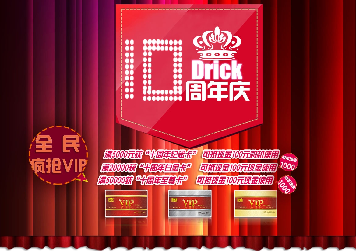 ◆ VIP周年紀(jì)念卡從發(fā)卡之日起立即生效,持紀(jì)念卡的客戶單次購(gòu)買設(shè)備滿5000元即可享受100元現(xiàn)金抵用的尊貴權(quán)利,以此類推,上不封頂。