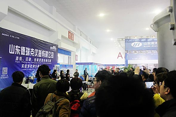 山東(國(guó)際)制漿造紙技術(shù)及裝備展覽會(huì)已成功舉辦十年,展會(huì)展出面積12000平方米,參展商約400余家,專業(yè)觀眾達(dá)15000余人,山東德瑞克攜2015新上市升級(jí)版產(chǎn)品亮相本次展會(huì),其中DRK101A拉力試驗(yàn)機(jī)采用進(jìn)口直流伺服電機(jī)和滾珠絲桿構(gòu)造性能更穩(wěn)定, 中英文自由切換配合智能化 觸摸屏操作更便捷,且實(shí)時(shí)顯示曲線和數(shù)據(jù)。此外,平滑度儀,耐破度儀,耐折度儀,撕裂度儀,紙箱抗壓機(jī)等十余種新型檢測(cè)儀器也是山東德瑞克本次展會(huì)展出的得意之作,美觀,穩(wěn)定,智能化,適中的價(jià)格,深得與會(huì)客戶的一致認(rèn)可與好評(píng)。