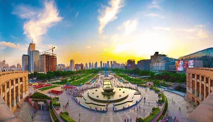 泉城廣場(chǎng)坐落于濟(jì)南市中心的繁華地帶,自西向東依次包括: 趵突泉廣場(chǎng)、濟(jì)南名士林、泉標(biāo)廣場(chǎng)、下沉廣場(chǎng)、頤天園及童樂(lè)園、濱河廣場(chǎng)、銀座購(gòu)物廣場(chǎng)、荷花音樂(lè)噴泉、四季花園、文化長(zhǎng)廊、科技館等十余部分。