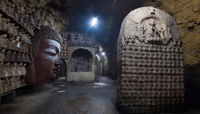 千佛山古稱歷山,因?yàn)楣攀贩Q舜在歷山耕田的緣故,又曾名舜山和舜耕山。隋開(kāi)皇年間,因佛教盛行,隨山勢(shì)雕刻了數(shù)千佛像,故稱千佛山。