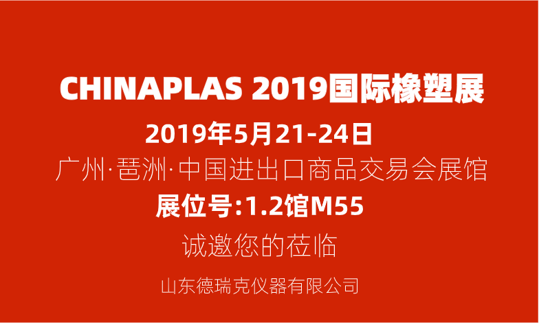 2019年CHINAPLAS國際橡塑展將于2019年5月21-24日在中國廣州.琶洲.中國進出口商品交易會展館舉辦。該展會涉及的行業(yè)有化學(xué)、橡膠、塑料、原料等;涉及的主要產(chǎn)品有塑料機械及產(chǎn)品、塑膠加工機械等。山東德瑞克應(yīng)邀參加,屆時我們將攜2019新款橡膠塑料檢測儀器在1.2館M55展位恭候新老客戶的參觀指導(dǎo)!