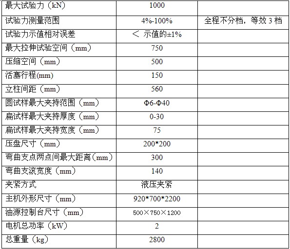 主機(jī)為兩立柱、兩絲杠、油缸下置式,拉伸空間位于主機(jī)的上方,壓縮、彎曲試驗(yàn)空間位于主機(jī)下橫梁和工作臺(tái)之間。測力儀表采用高清液晶顯示屏,實(shí)驗(yàn)數(shù)據(jù)方便直觀。